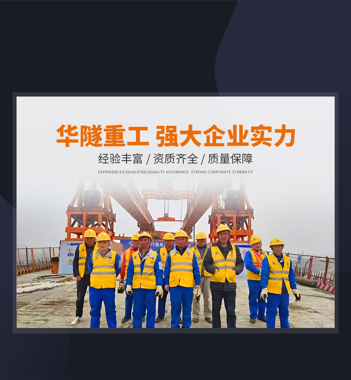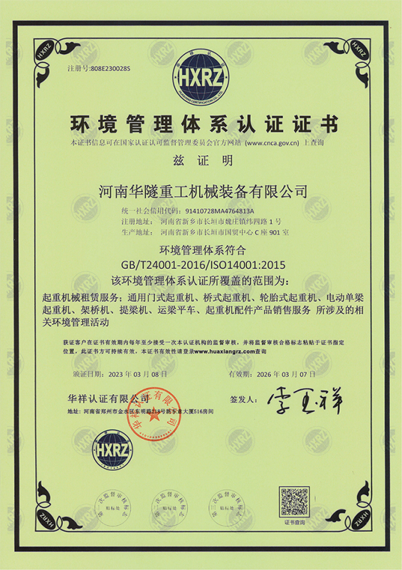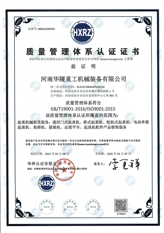 河南華隧重工機械裝備有限公司主要從事通用門式起重機、橋式起重機、電動單梁起重機,輪胎式起重機、架橋機、提梁機、遠梁平車、鋼絲繩電動萌蘆、卷揚機、起重配件制造、銷售:起重機械租賃、安裝和維修,起重設備園收,機械設備維修,鋼結構工程承包,橋梁工程及技術咨淘服務,銷售五金制品、機電設備:建設工程監理,建設工程設計,各類工程建設活動,建筑勞務分包,建筑物折除作業,施工作業,工程管理服務,土石方工程施工,裝如發運。  公司已通過IS0國際質量、環境、健康與安全三合一標準認證,特種設備制造許可證和特種設備安裝改造維修許可證。擁有完熟的質量管理體系。嚴格的管理制度,強大的生產能力和先進的檢測手段,在保證產品質量的同時,也具備了極強的市場競爭力?! 」緢猿挚萍紕撔聻槔砟?,產品質量為核心,注重信譽,建立了減信可靠、快捷、思速。便利周到的售后服務網絡。  我們擁有的技術專家和技術服務隊伍為客戶提供充善的售前技術支持和全天候的售后服務體系,讓您無后顧之憂,享受一站式的超值服務。  “華隧重工,伴您成功“是華隧重工永遠的宗指,真被的希望與各界朋友攜手并進。共創輝準!